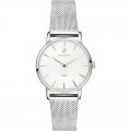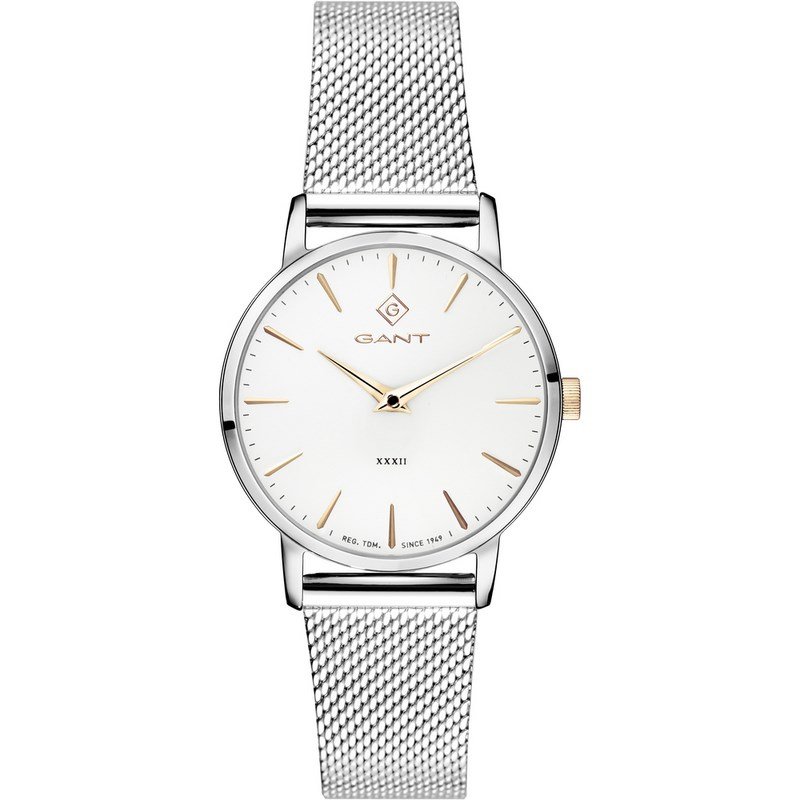 Dámke hodinky od značky Gant G 127010 PARK AVENUE 32. Dizajnové dámske hodinky napájanie je na baterku. Hodinky majú strojček od značky MIYOTA GL20 . Priemer púzdra je 32.0 mm, je z ocele. Hodinky majú elegantný biely ciferník, ktorý má zlaté ručičky s dvanástimi indexami a logom Gant. Sklíčko je minerálne. Hodinky sú odolné proti vode pri sprchovaní a umývaní. Kombinácia striebornej a zlatej na hodinkách tvorí celkovo moderný vzhľad hodiniek. Hodinky pôsobia elegantne a sú krásnym doplnkom každej ženy.