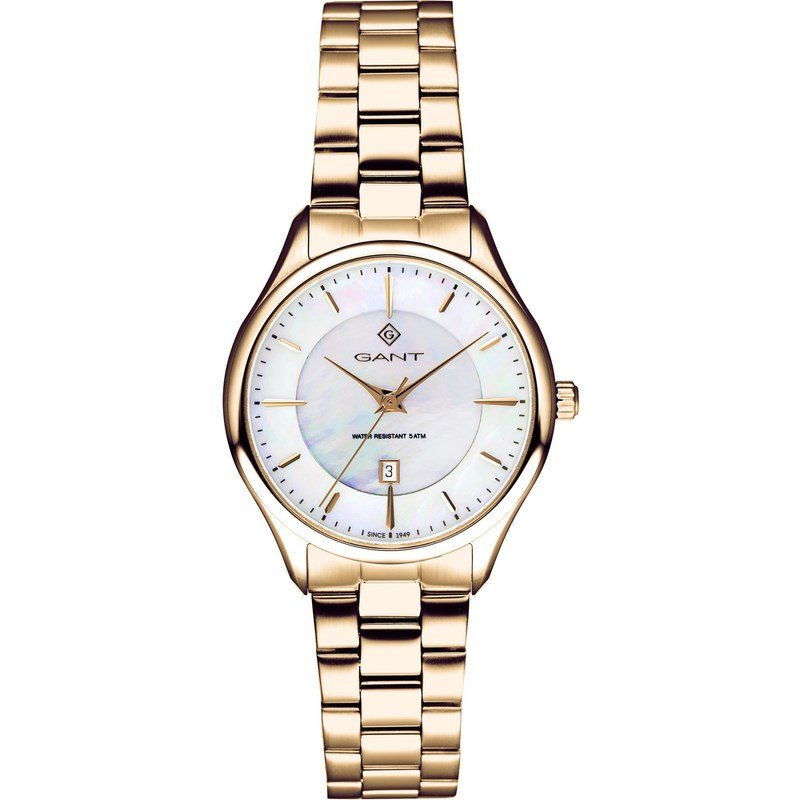 Dámske elegantné hodinky GANT Louisa G137004 sú nadčasové dámske hodinky na ruku, ktoré sú nielen praktickým ukazovateľom času, ale aj štýlovým módnym doplnkom. Hodinky majú ciferník s veľkosťou 33 mm, ten prekrýva odolné minerálne sklíčko. Tento model používa analógové zobrazenie. Takzvané Quartz riešenie strojčeka je zárukou čo najdlhšej výdrže na batériu a zároveň veľkej presnosti. Materiál remienka tvorí oceľ, vďaka tomu je náramok pravou ozdobou bez akejkoľvek straty komfortu pri nosení. Hodinky Gant nemusíte dávať dole v sprche alebo pri umývaní rúk, priame potápanie a plávanie ich ale môže poškodiť. Ich stupeň krytia nesie označenie 50 m (5 ATM).