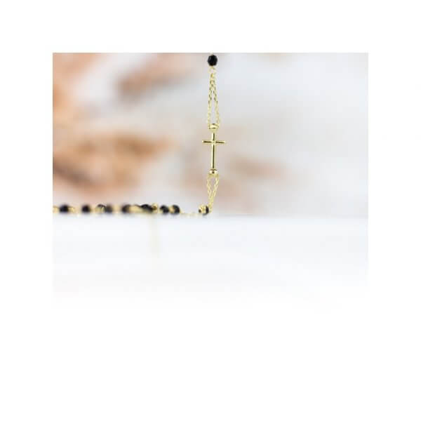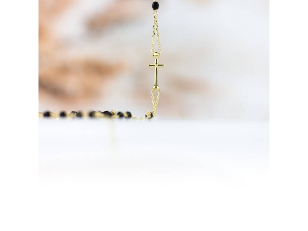 Náramok - Ruženec nepatrí medzi obyčajné náramky. Je jedinečný a nesie určité posolstvo. Posolstvo ochrany obdarovanej. Ruženec je zdobený čiernym ónyxom, ktorý je pevne uchytený v náramku. Náramok disponuje dvoma príveskami - krížikom a medailónom Panny Márie. Týmto symbolickým šperkom určite potešíte seba, alebo niekoho blízkeho. Takýto šperk Vás bude chrániť a sprevádzať celý život,