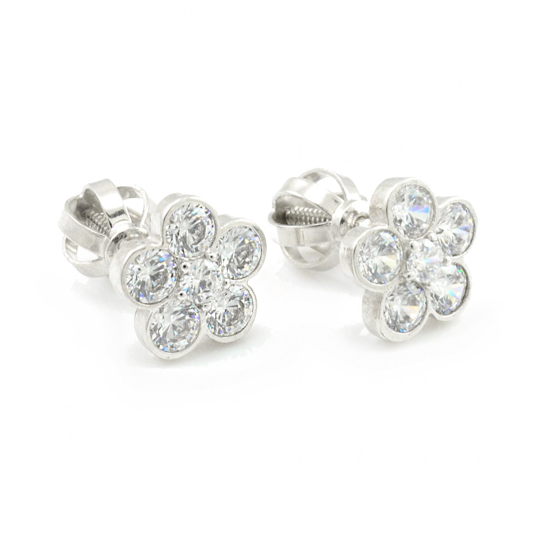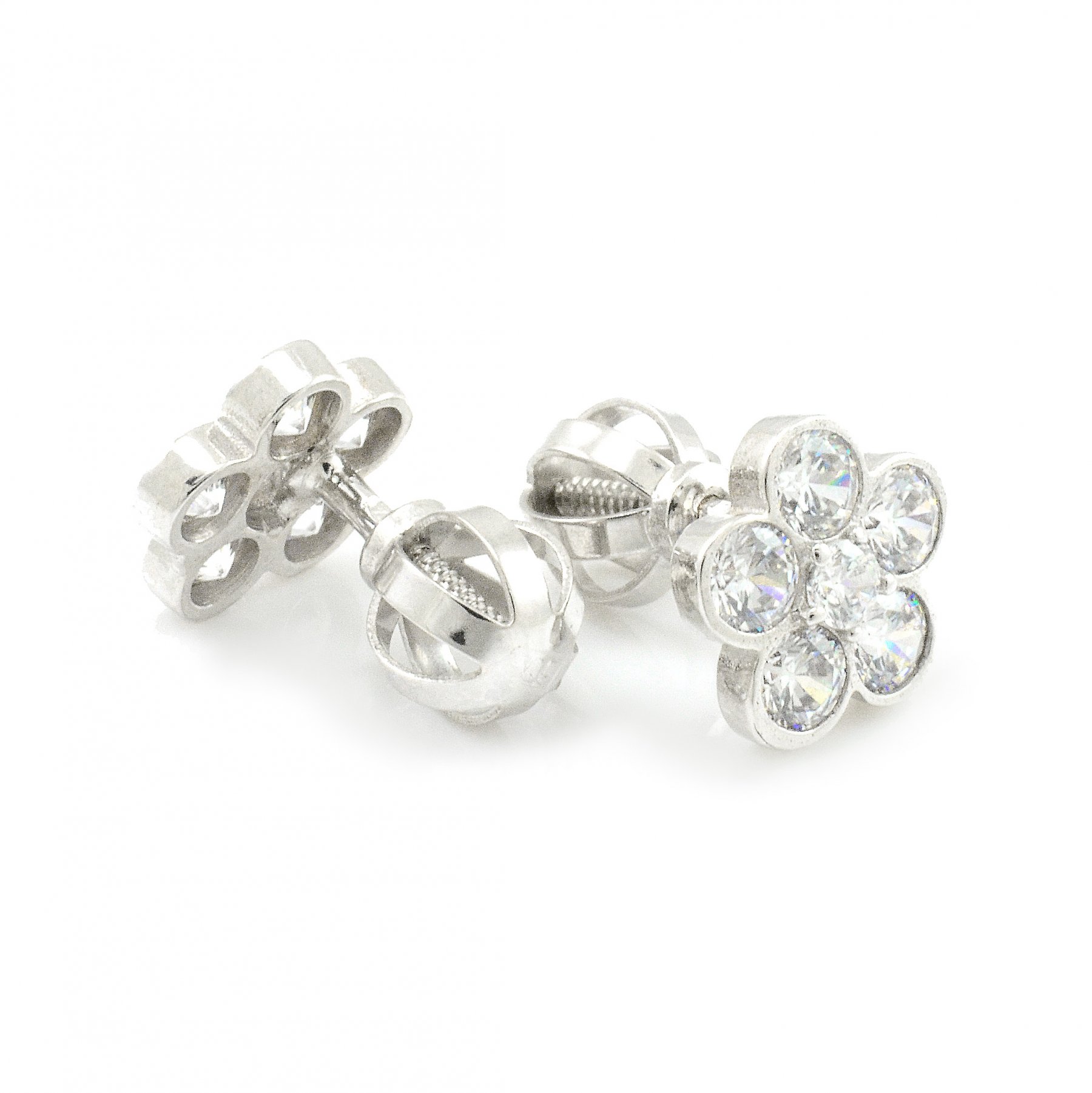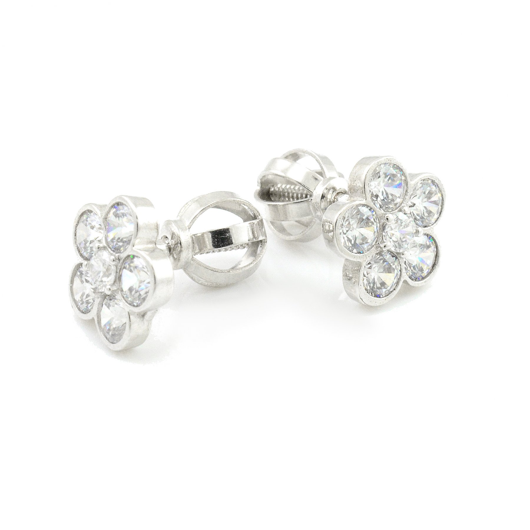 Náušnice z bieleho zlata kvetinka s čírymi zirkónmi na balónik