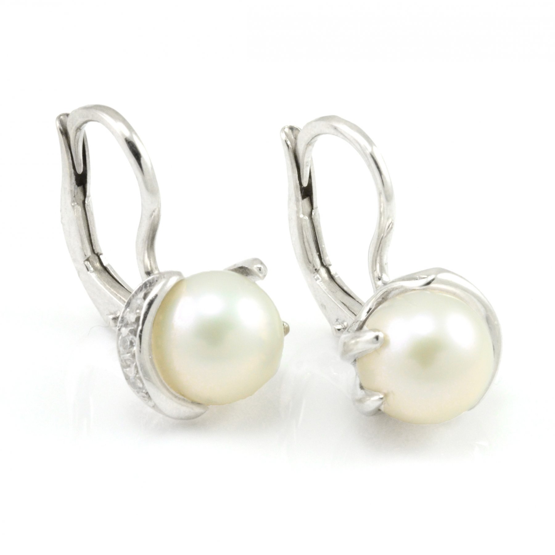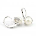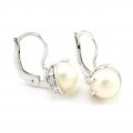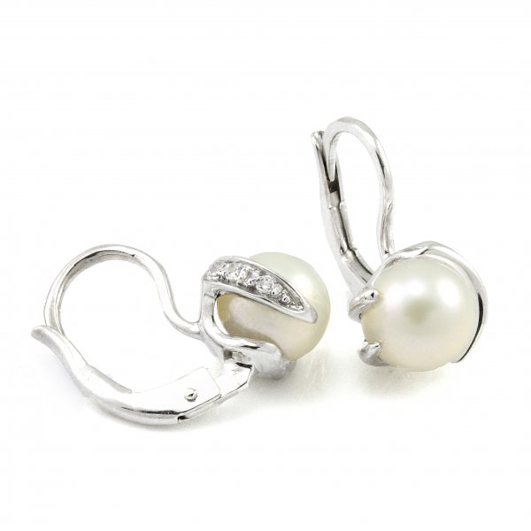 Náušnice z bieleho zlata veľká biela prírodná perla 8mm a tri zirkóniky