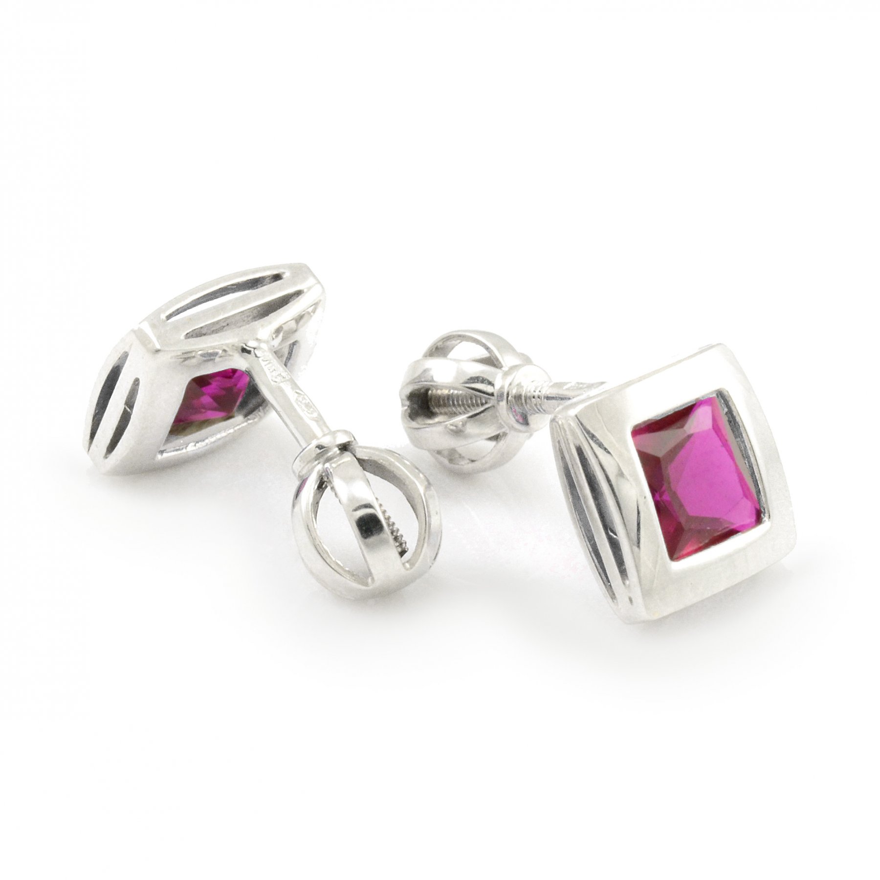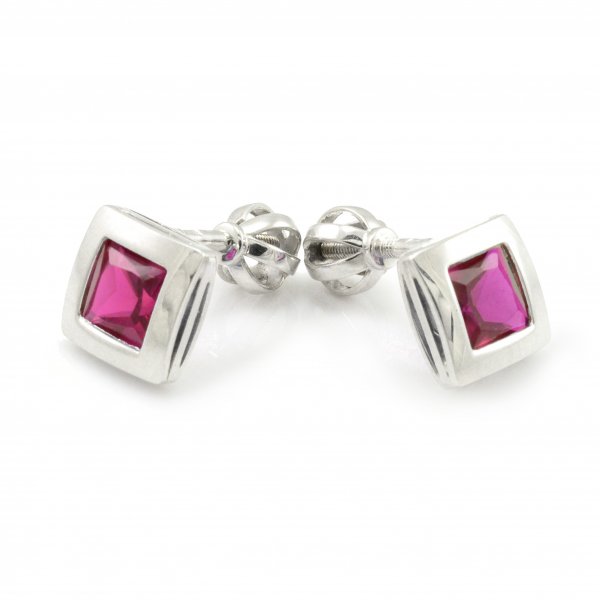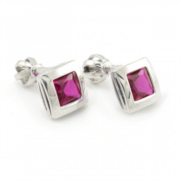 Náušnice z bieleho zlata, ktoré sú doplnené fialovočerveným zirkónom vo veľkosti 5 x 5 mm. Na týchto náušniciach je použitý balónikový typ uzáveru. To znamená že sa šróbujú - sú na závit. Veľmi príjemne sa nosia na uchu. Ak hľadáte darček pre niekoho, komu chcete urobiť radosť, týmto typom náušníc určite nič nepokazíte. Sú vhodné na akúkoľvek príležitosť.