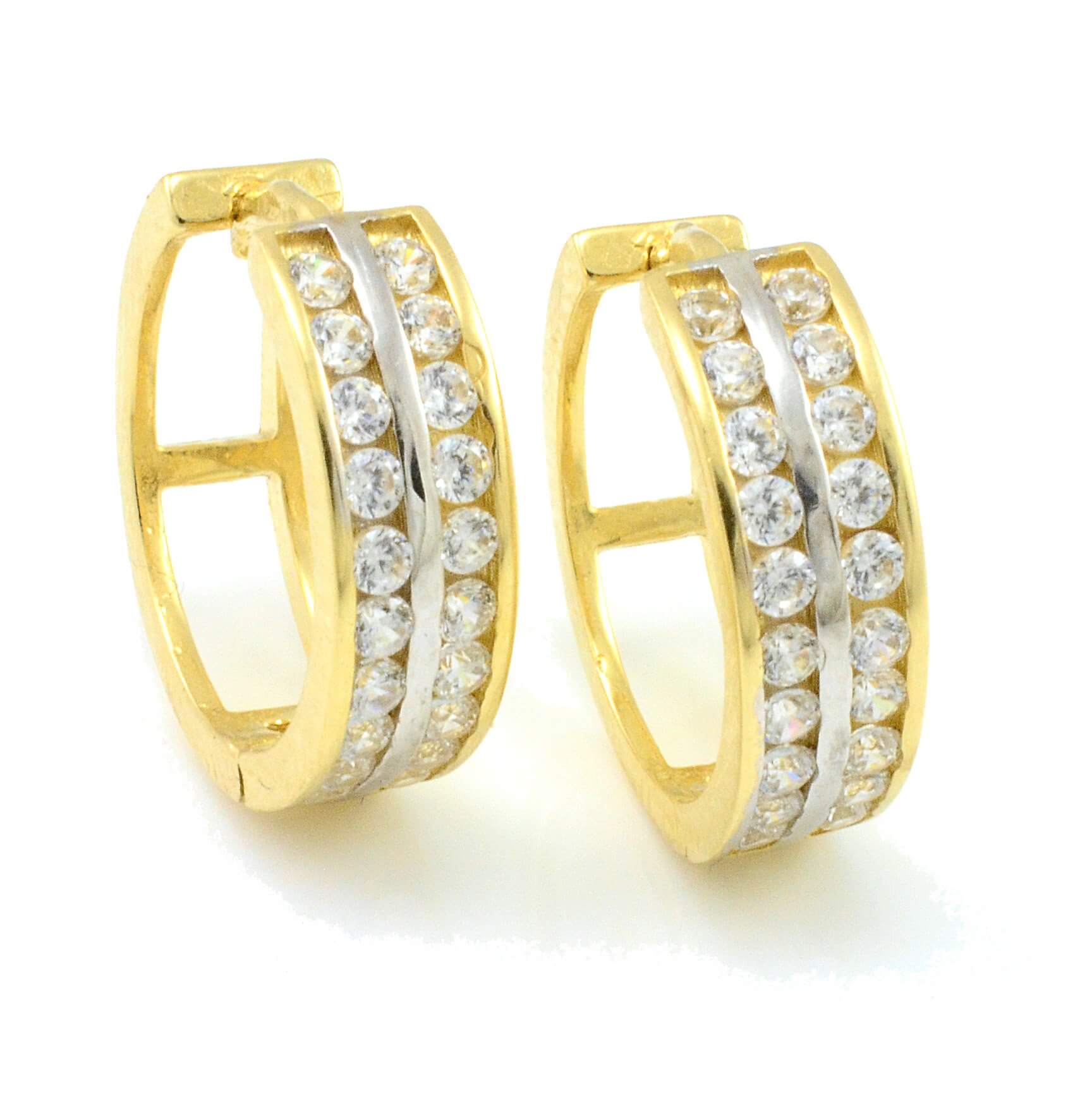 Náušnice zo žltého zlata krúžky kameňové dvojradové s čírymi zirkónmi