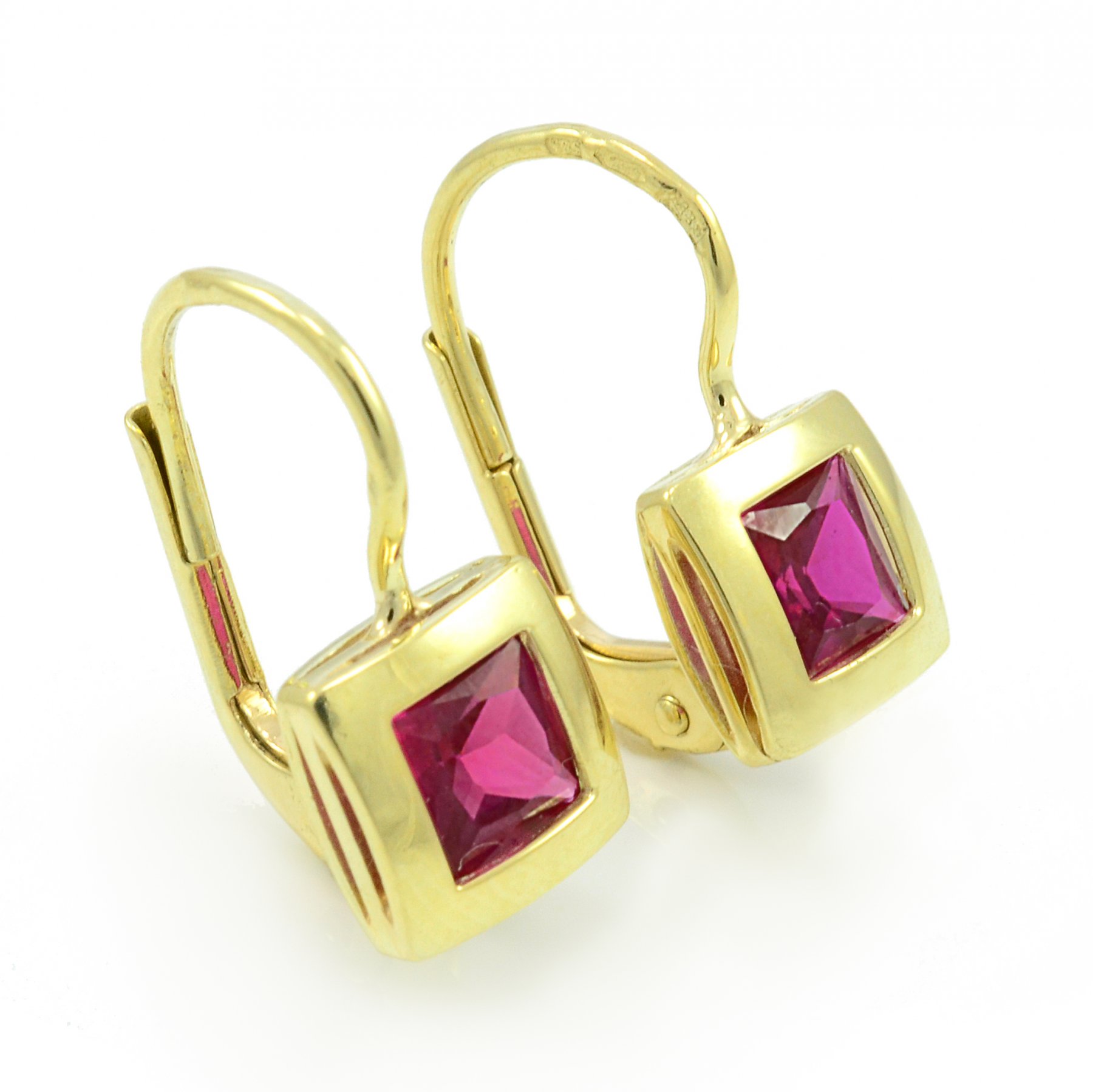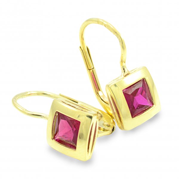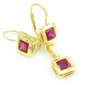 Náušnice zo žltého zlata s červenofialovým zirkónom.