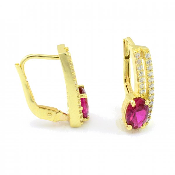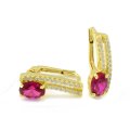 Náušnice zo žltého zlata s rubínovým zirkónom a s pásikmi čírich kamienkov