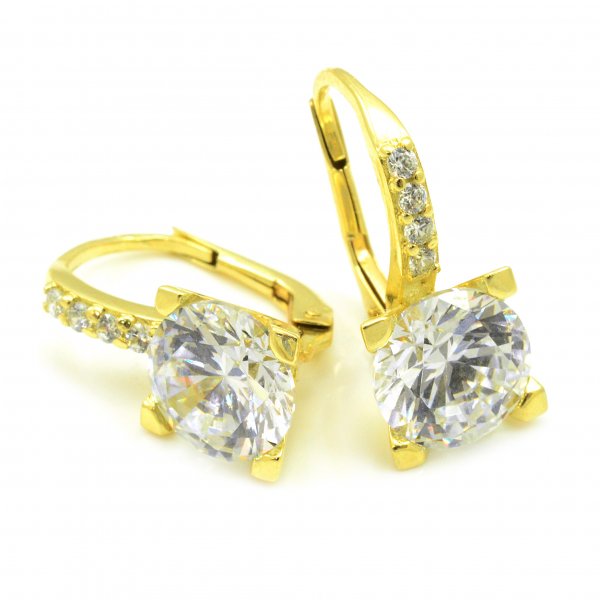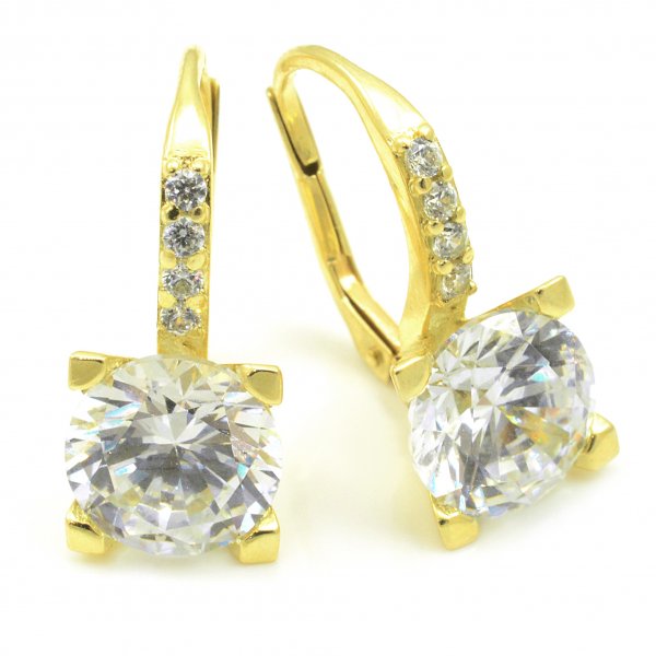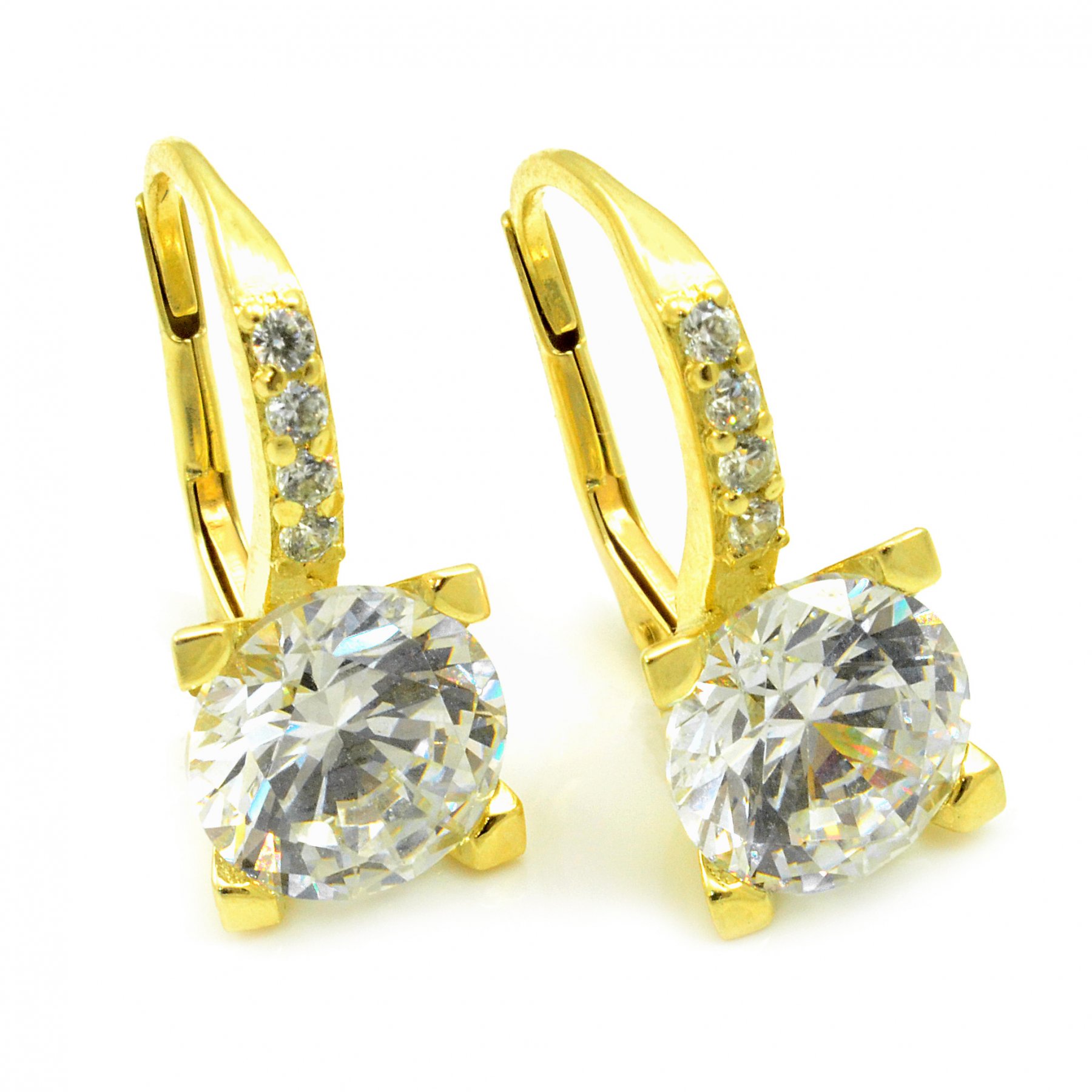 Náušnice zo žltého zlata s čírymi zirkónmi - Lux 3