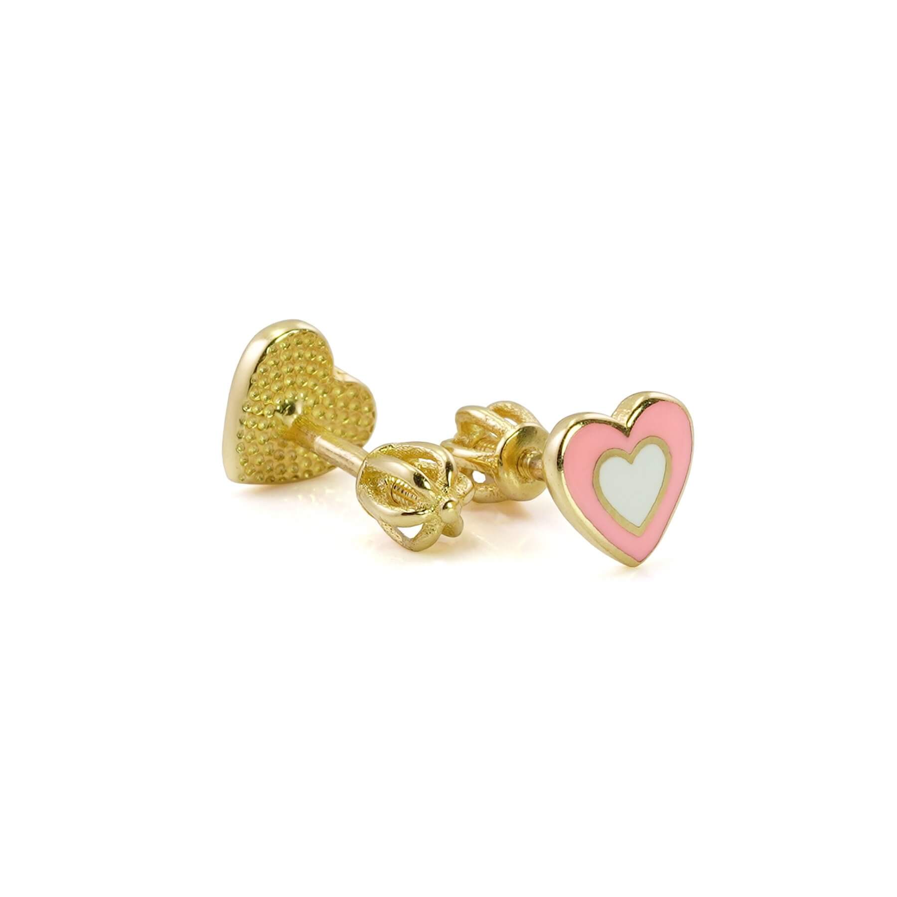 Náušnice zo žltého 14 kt zlata v tvare srdiečka s ružovým a bielym emailom. Náušnice nie len pre mladé slečny, ale aj ženy. Balónikové zapínanie zabezpečuje veľmi dobrú ochranu proti strate. Samotný balónik sa na náušnicu našróbuje. Ideálny darček k narodeninám, birmovke, maturitám.