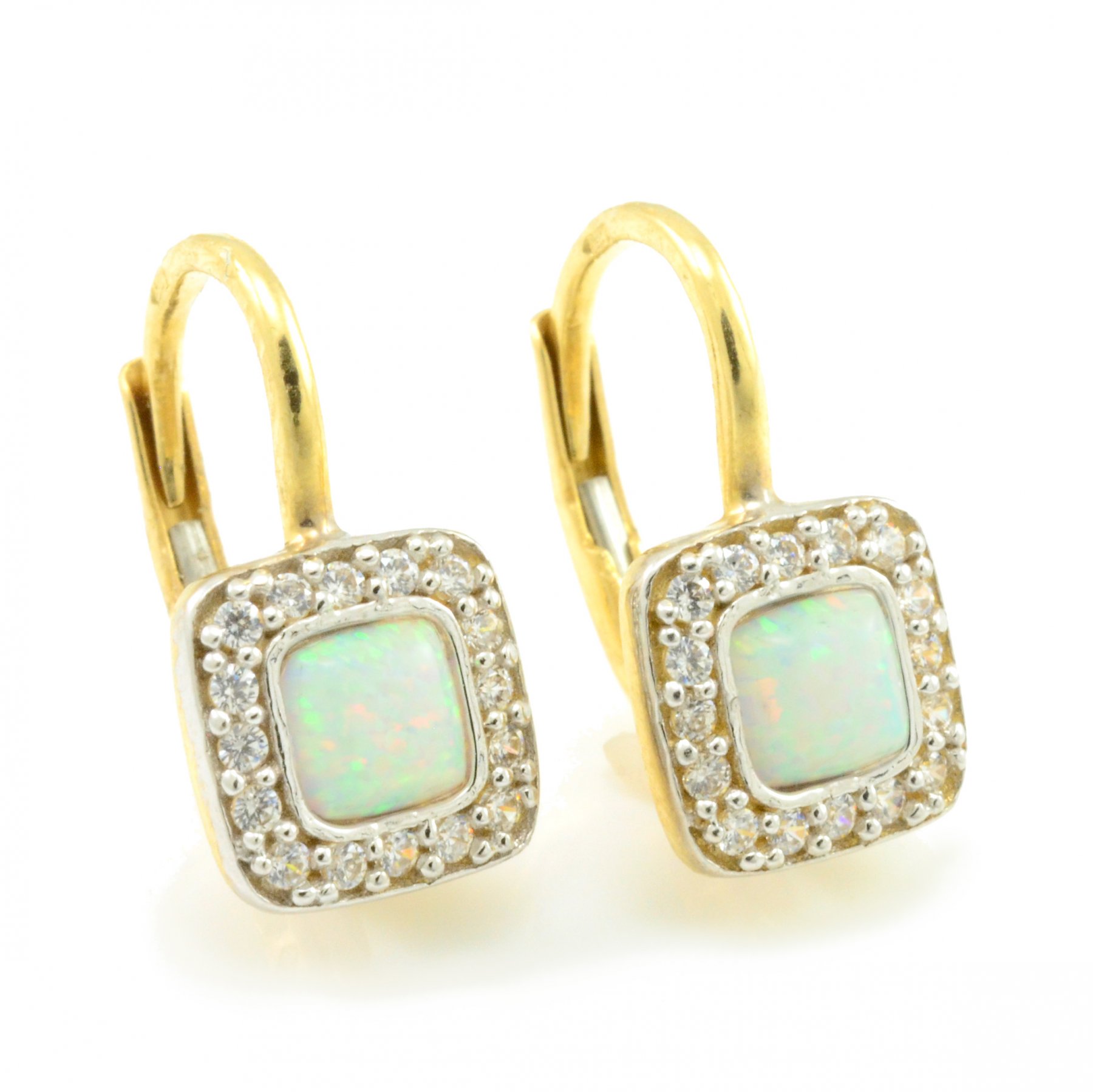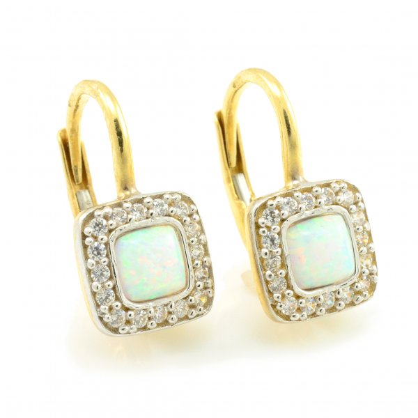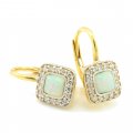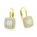 Náušnice zo žltého zlata štvorcové opály obkolesené zirkónmi
