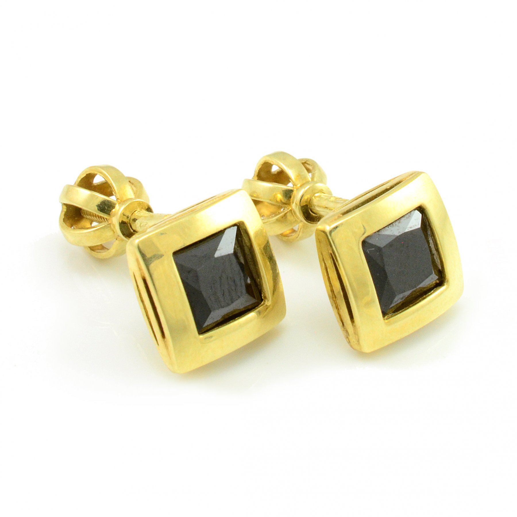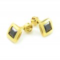 Jednoduché jemné náušnice zo žltého zlata. V každej z náušníc je osadený veľký štvorcový zirkón čiernej farby o rozmere 5 mm.Na týchto náušniciach je použitý balónikový typ uzáveru. To znamená že sa šrobujú - sú na závit. Tento šperk s krásnymi čistými líniami pôsobí veľmi elegantne. Nie nadarmo sa hovorí: V jednoduchosti je krása. Tento šperk je toho dôkazom. Zažiarite v každom okamihu. Vhodné aj pre pánov.