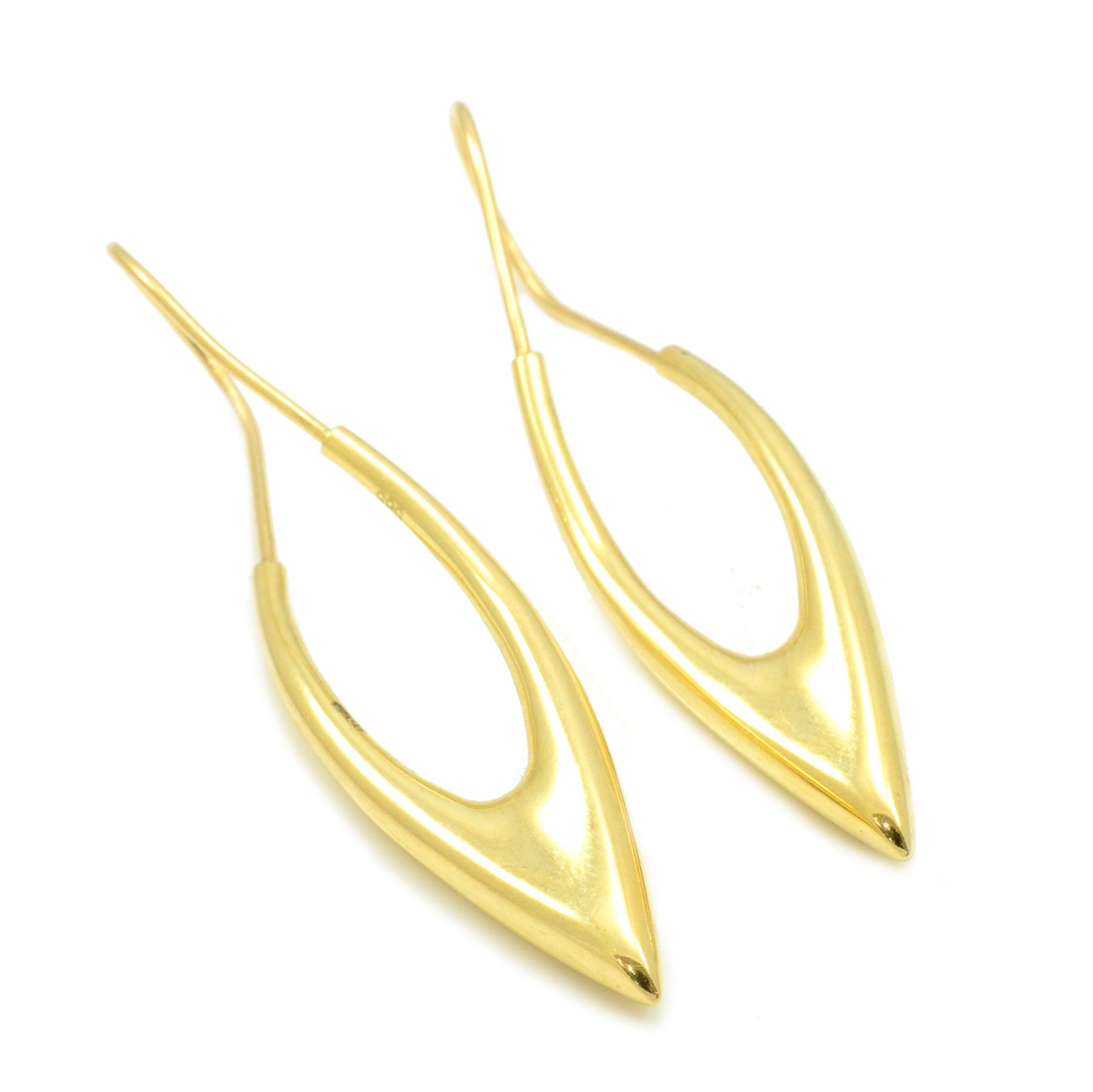 Čisté línie, nádherný odlesk, jednoduchosť ale predcíznosť práce, to sú presne tie vlastnosti, ktorými sa prezentujú tieto visiace náušnice. Svojím nevšedným dizajnom dodajú žene pocit luxusu a elegancii zároveň. Žlté zlato im len dodáva punc exkluzívneho šperku. Náušnice sú dlhé 4,5 cm. Zapínanie je veľmi jednoduché. Prevlečením cez ucho ich zasuniete do širšej časti náušnice. Náušnice sú vhodné pre všetky vekové kategórie. Vhodné sú na každodenné nosenie, ale aj v spoločnosti s nimi určite zaujmete.