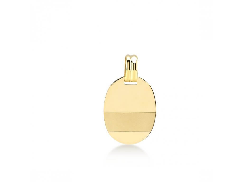 Minimalistický prívesok oblých tvarov je zrobený zo žltého 14 karátového zlata. Povrch platničky je lesklý v spodnej časti je jemne matovaný. Prívesok pôsobí decentne a elegantne. Vhodný na každodenné nosenie.