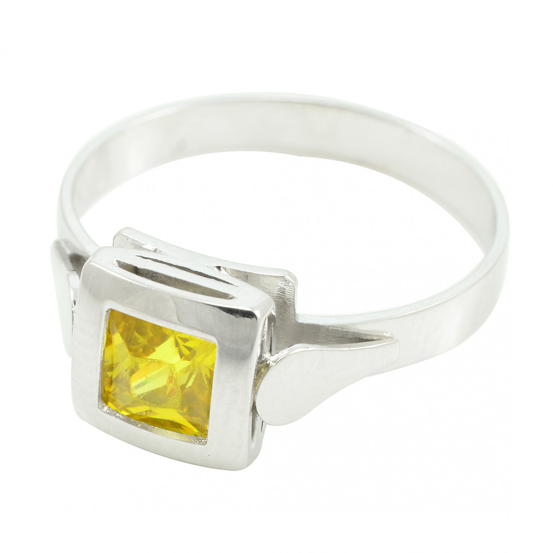 Prsteň z bieleho zlata 5 mm x 5 mm žltý zirkón