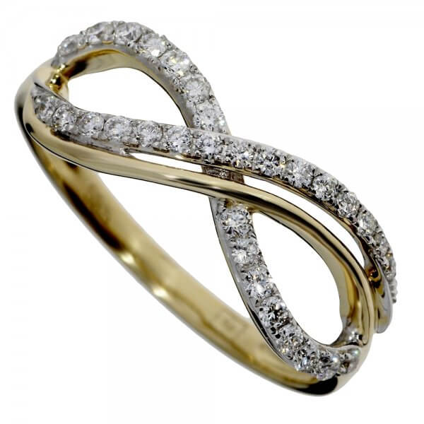 Prsteň zo žltého zlata s briliantmi, ktorý dokonale vyjadruje lásku k osobe, ktorá ním bude obdarovaná. Prsteň v tvare ,,Nekonečna" povie všetko za Vás. Šperk pôsobí veľmi elegantne a očarujúco nielen vďaka precíznosti fasovania briliantov ktoré majú 0.25 ct. Prsteň je vhodným darčekom k narodeninám, zásnubám, promóciam k výročiu. Je dodávaný v elegantnej krabičke s certifikátom pravosti.
