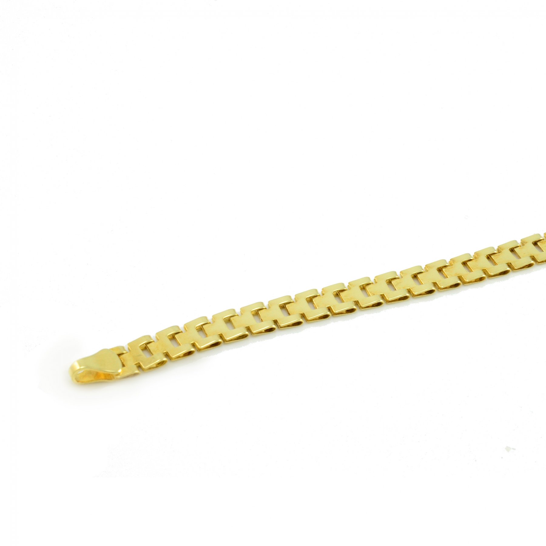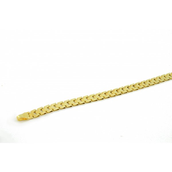 Elegantná dámska retiazka vyrobená zo žltého zlata o rýdzosti 14 karátov. Skladá sa z článkov, ktoré sú ploché. Vytvárajú dokonalý lesk. Tento náhrdelník je obojstranný. Ako zapínanie použitá karabína.K náhrdelníku máme v ponuke aj náramok.