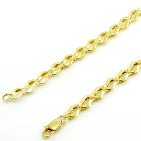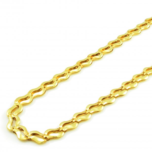 Elegantná dámska retiazka vyrobená zo žltého zlata o rýdzosti 14 karátov. Skladá sa z článkov, ktoré majú vyseknuté vnútro a sú v tvare vlniek. Vytvárajú dokonalý lesk. Tento náhrdelník je obojstranný. Ako zapínanie použitá karabína.