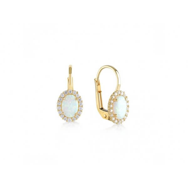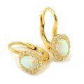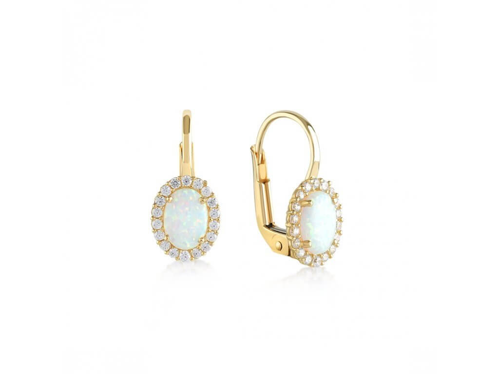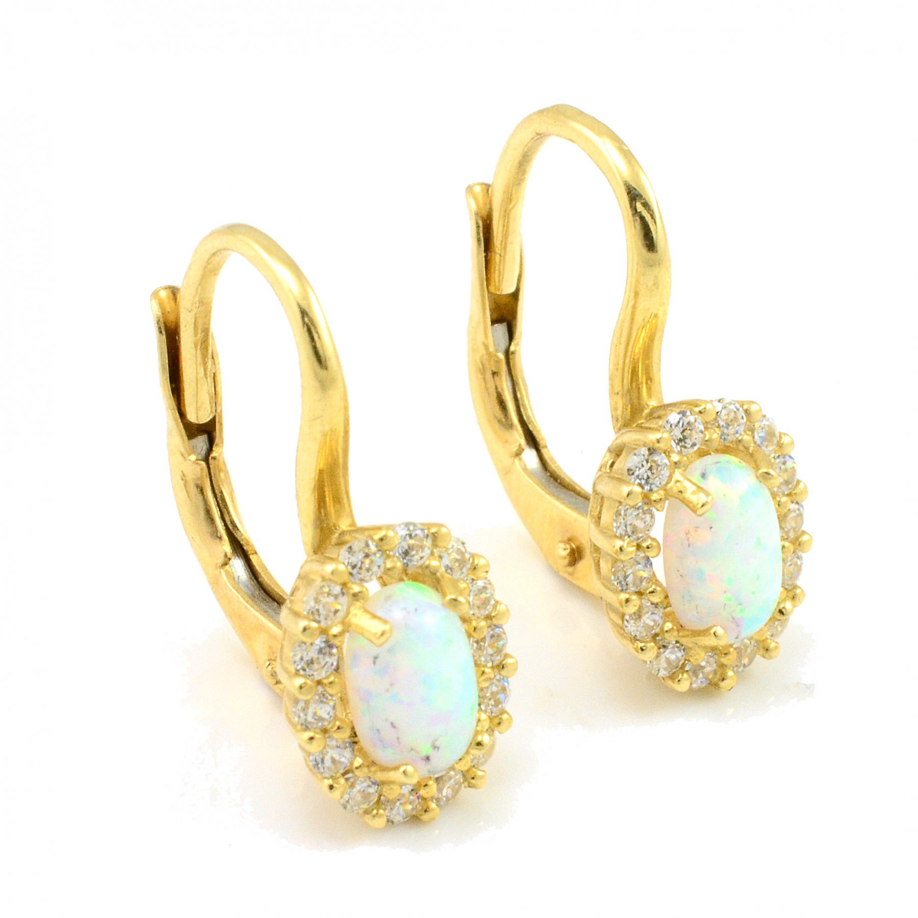 Náušnice zo žltého zlata biely opál zirkóny dookola