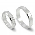 Svadobné obrúčky vyrobené z bieleho zlata. Pár polguľatých obrúčok širokých 4 mm. Celo lesklé svadobné obrúčky. Moderný model svadobných obrúčok.