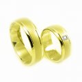 Svadobné obrúčky zo žltého zlata matný stred, jeden zirkón
