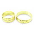 Svadobé obrúčky zo žltého zlata s ručným gravírom a zirkónmi