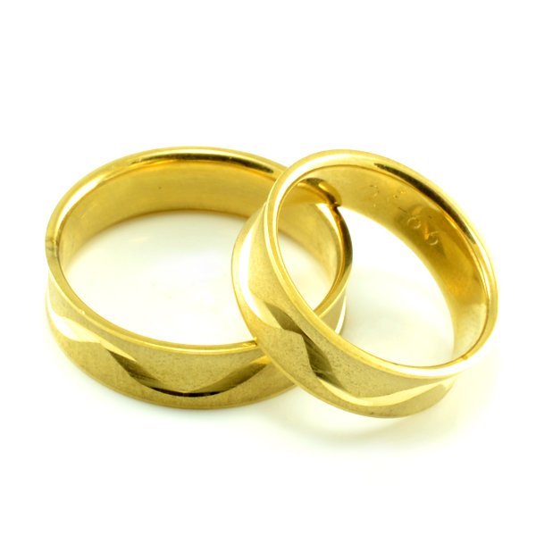 Svadobné obrúčky vyrobené zo žltého zlata. Pár moderných, vypuklých obrúčok do vnútra. Svadobné obrúčky široké 6 mm. Po celom obvode obrúčok sa tiahne meniaca sa lesklá vlnka, ktorá je vyrobená pomocou diamantového noža. Ostatná časť obrúčky je opieskovaná. Z vnútra je obrúčka zaoblená - to zaručuje veľmi komfortné nosenie. Do tohoto typu svadobných obrúčok štandardne nefasujeme žiaden kameň.V prípade akejkoľvek zmeny nás kontaktujte telefonicky alebo mailom. Dámska a pánska svadobná obrúčka je identická. Poctivá slovenská a najmä ručná výroba svadobných obrúčok. Gravírovanie mien a dátumov do obrúčok je u nás zadarmo.