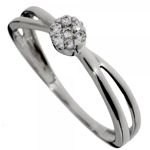 Zásnubný prsteň z bieleho zlata s briliantmi, ktoré majú 0.10 ct. Šína prsteňa je rozdvojená a v korunke sa spája do jednej. Dizajn prsteňa je jemný, romantický. Tento prsteň poteší nie jednu romantickú dušu. Prsteň je dodávaný v elegantnej krabičke s certifikátom pravosti.