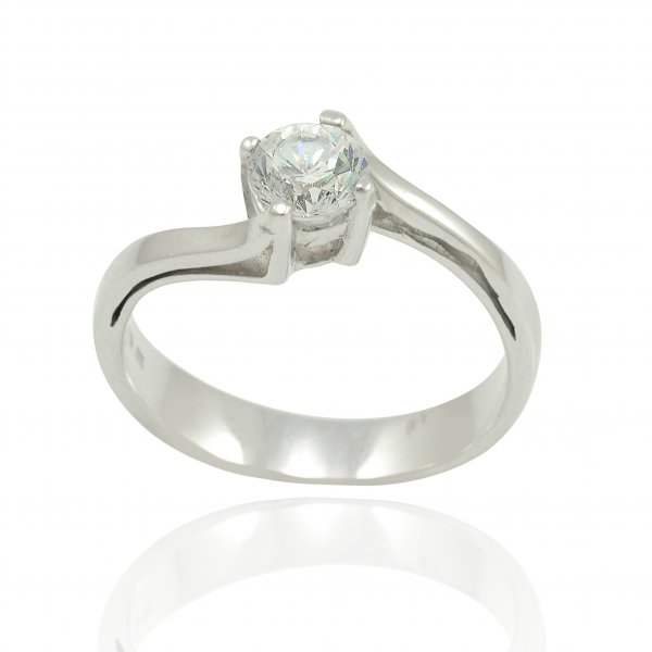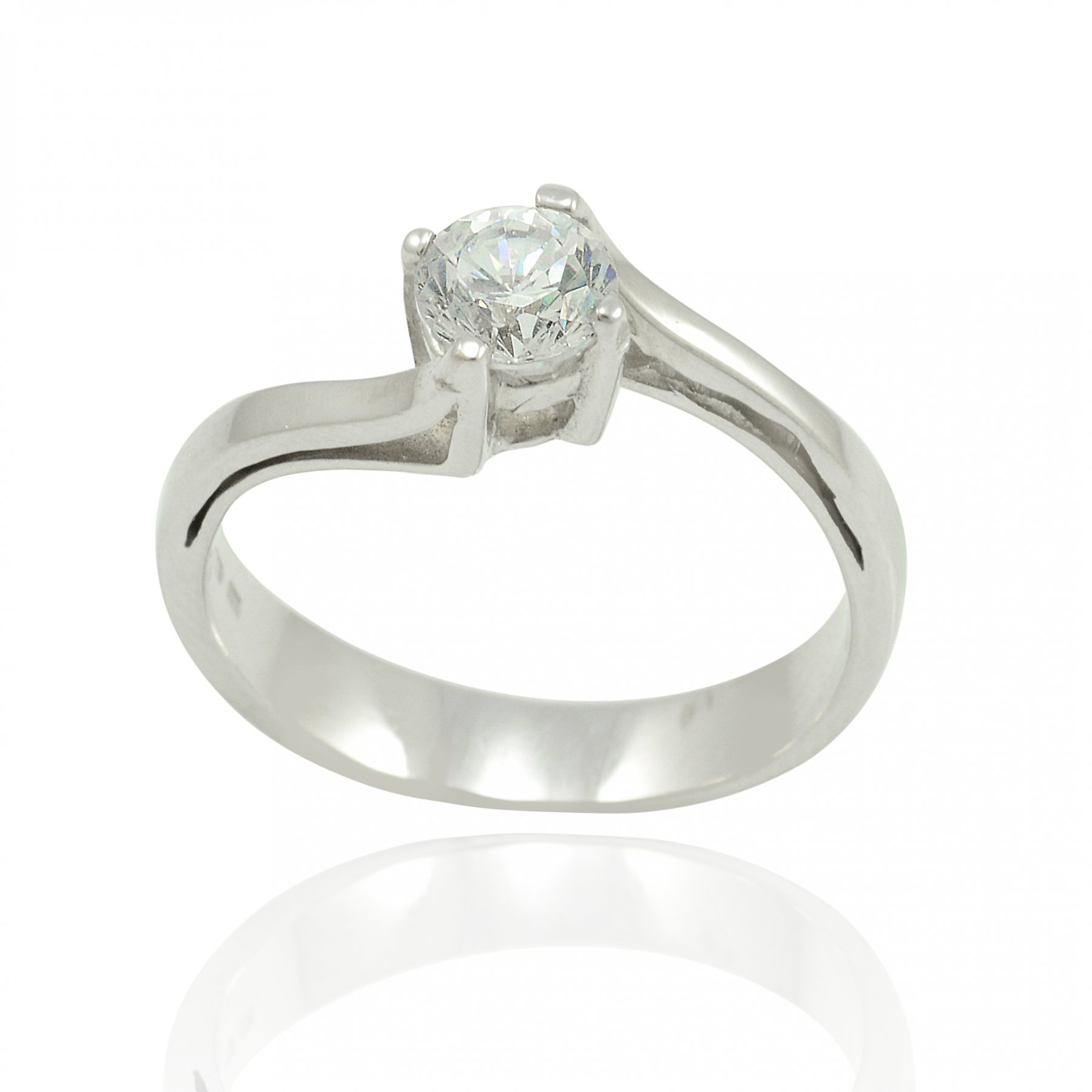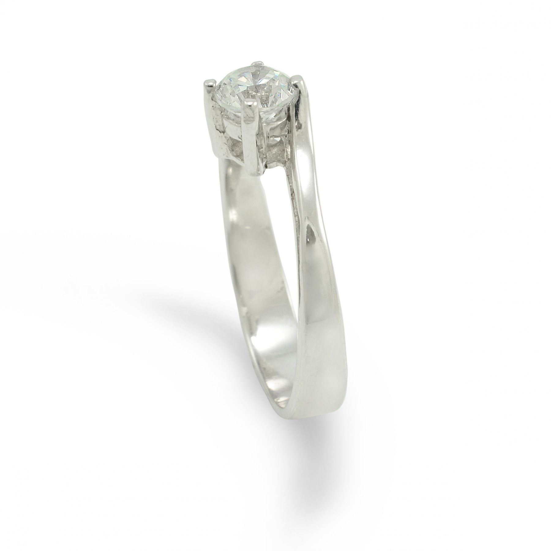Luxusný zásnubný prsteň vytvorený z bieleho zlata. Zásnubný prsteň je masívny typ a vyznačuje sa svojou tuhosťou a pevným spracovaním. Prsteň z bieleho zlata sa skladá zo šíny, ktorá je vo svojom najširšom bode - na samom spodku široká až takmer 4 milimetre. Tá sa postupne zužuje a stáča a objíma zirkón, ktorý je uchytený štyrmi silnými packami. Tento spôsob osadenia kameňa evokuje symbol obopínania dvoma rukami. Zásnubný prsteň pri pohľade z boku pôsobí majestátne a luxusne. Prepletaná línia symbolizuje spojenie dvoch zamilovaných duší.