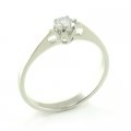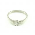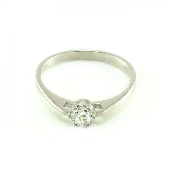Luxusný zásnubný prsteň vyrobený z bieleho zlata. Jemný typ určený najmä pre zákazníkov, ktorí nemajú radi výstredné šperky a veľmi do očí bijúce zásnubné prstene. Veľmi pekne sadne na prst vďaka komfortnej šíne plochého tvaru. V korunke je centrálne osadený zirkón, ktorý je uchytený 6-mi prackami a to zabezpečuje maximálnu kvalitu uchytenia. Od korunky zásnubného prsteňa sa tiahne šína, ktorá sa jemne rozťahuje. Vedľa korunky na každej strane je vyrezaný otvor, ktorý slúži na to, aby dovolil preniknúť svetlu na zirkón a zvýrazniť tú krásu na prste.
