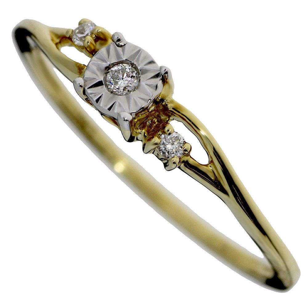 Zásnubný prsteň zo žltého zlata s briliantom, ktorý je osadený v zlate z bieleho zlata. Po stranách sú fasované ďalšie menšie brilianty. Takýmto fasovaním v jemnej kombinácii materiálu získava prsteň eleganciu a na prste pôsobí veľmi decentne. Prsteň má 0,05 ct. Je dodávaný v elegantnej krabičke s certifikátom pravosti.