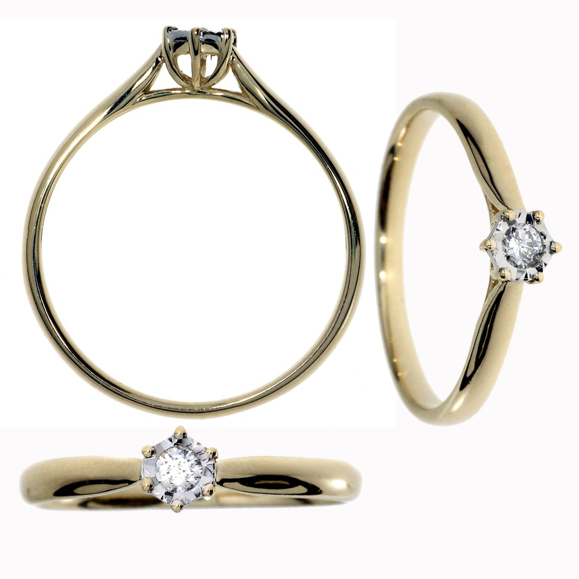 Zásnubný prsteň zo žltého zlata s jedným centrálnym briliantom. V jednoduchosti je krása a to platí aj pre tento typický solitér, ktorý očarí každú ženu. Šperk má 0,09 ct. Je dodávaný v elegantnej krabičke s certifikátom pravosti.