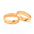 Svadobné obrúčky vyrobené z červeného zlata. Pár polguľatých obrúčok širokých 4,90 mm.