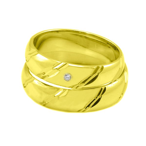 Zlaté Svadobné obrúčky zo žltého zlata s gravírom a kamienkom