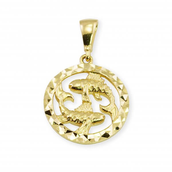 Prívesok v tvare kruhu je vyrobený zo žltého 14 karátového zlata. Prívesok má detailné vypracovanie, po obvode je gravírovaný. V strede je symbol znamenia Rýb. Povrch prívesku je hladký vo vysokom lesku. Vhodný tip na darček k narodeninám, prijímaniu, maturitám.