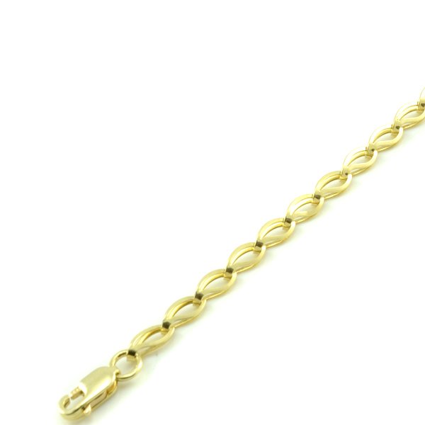 Elegantný dámsky náramok vyrobený zo žltého zlata o rýdzosti 14 karátov. Skladá sa z článkov, ktoré majú vyseknuté vnútro a sú v tvare ako keby zajacích uší, ktoré vytvárajú dokonalý lesk. Ako zapínanie použitá karabína.