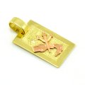 Platničkový prívesok zo žltého zlata v znamení vodnár, kde je znamenie vyrobené z červeného zlata a osadené na podmatovanom pozadí.
